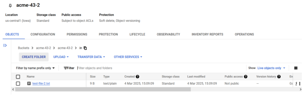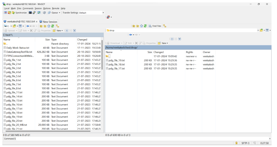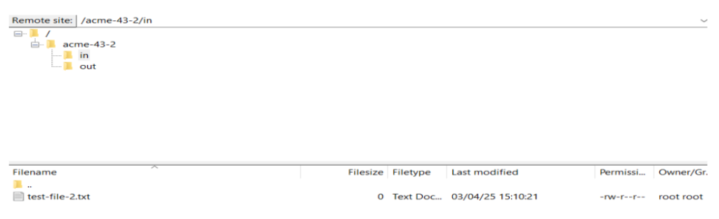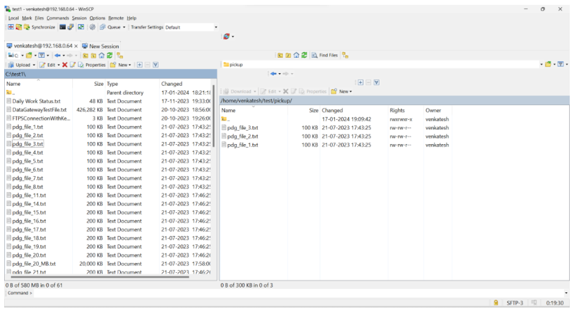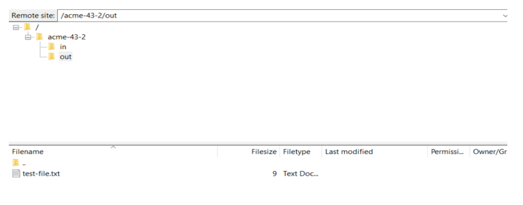 Connect to the File Transfer client and traverse to the pickup directory. You will be able to see the file which was available in the cloud storage.