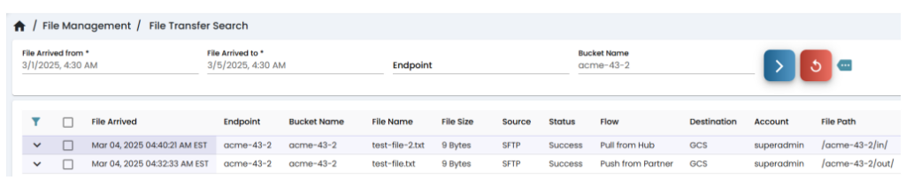 The file activity (Pull from Hub) can be viewed in File Transaction Search.