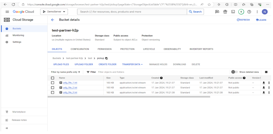 The partner can pull the files from the pickup directories, when the files are available in the appropriate cloud buckets.