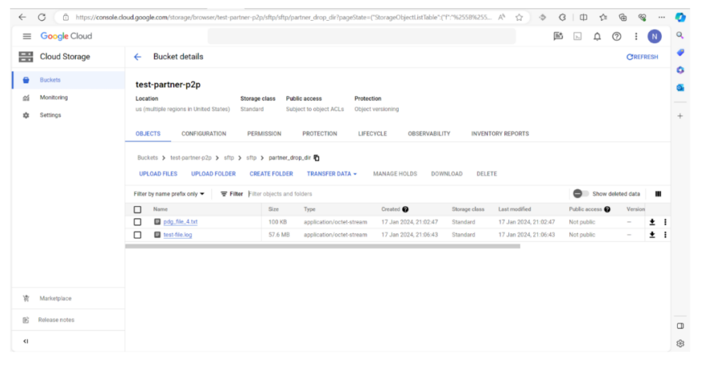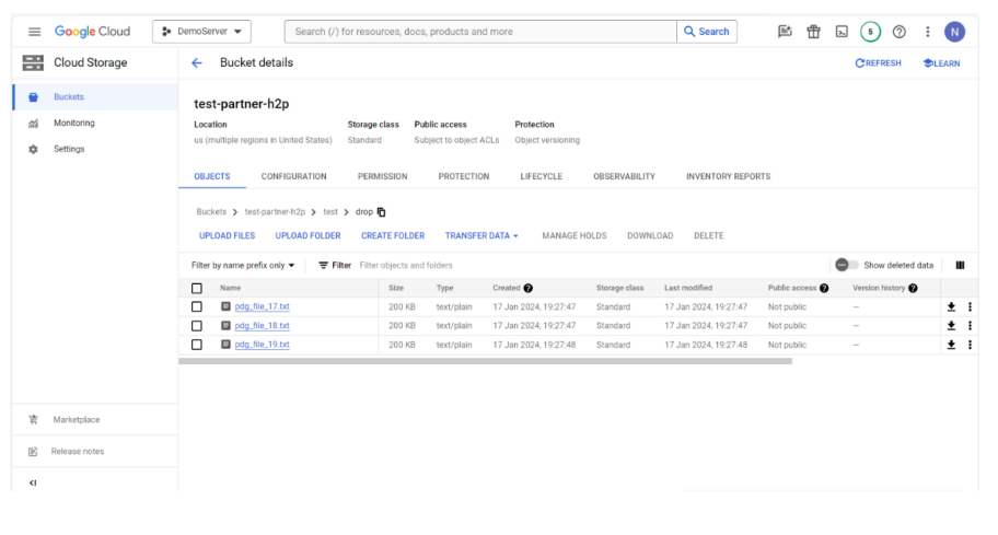 Drop files in the Drop Directory which are available in Cloud Storage. The files would be picked up and moved to the Drop Directory of the Partner’s remote server.