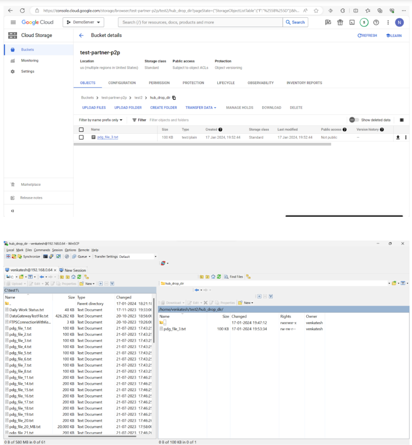 In case of the other direction, if the hub drops file in the cloud storage drop directories the files will be pushed to the partner’s remote server.