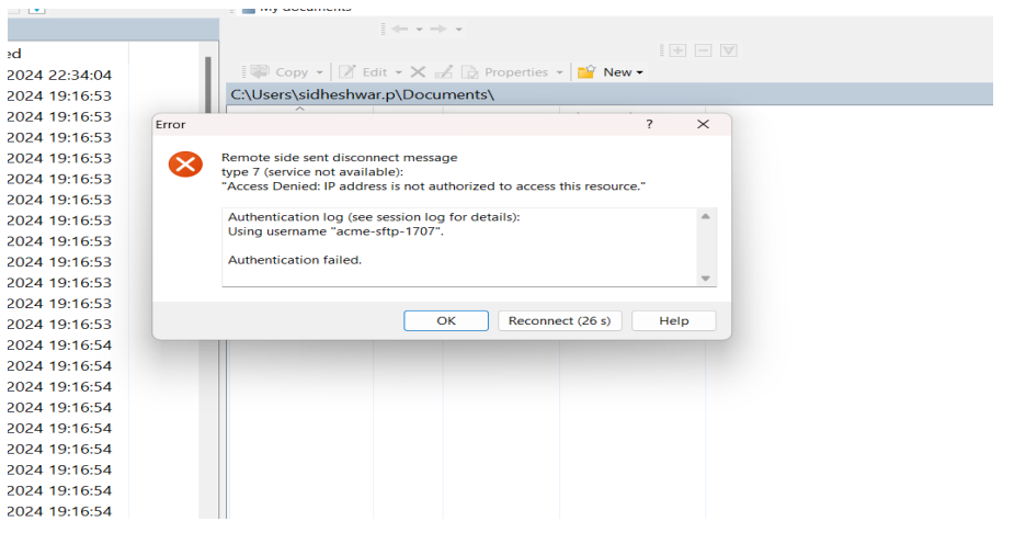 The failed attempt of creating a session from a non-whitelisted IP address will be logged in file transaction search: