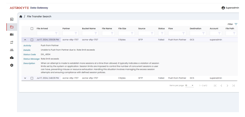4. Monitoring and Alerts: Administrators can monitor session usage through File Transaction Search.